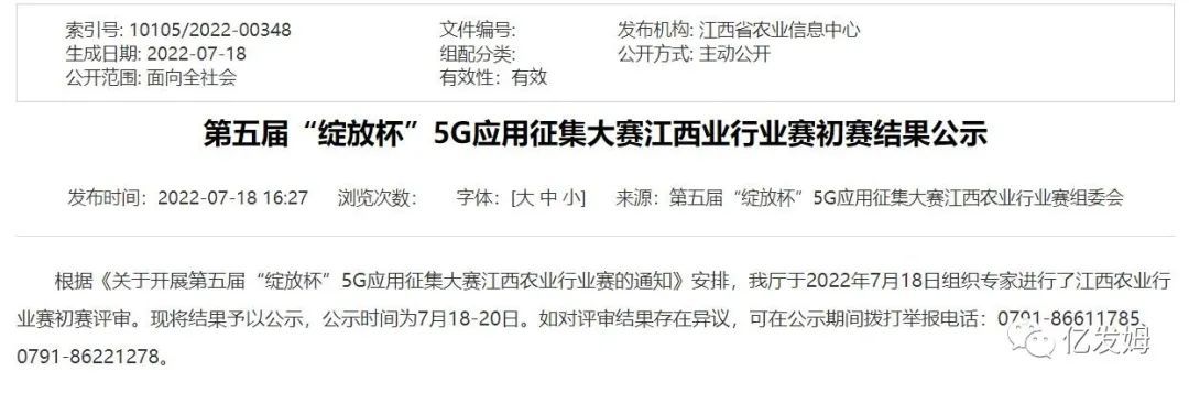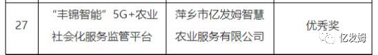 近日第五届“绽放杯”5G应用征集大赛行业赛初赛 结果公布 萍乡市亿发姆公司 “丰锦智能”5G+农业社会化服务监管平台 获奖啦