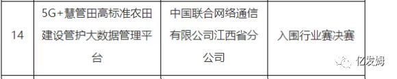同时亿发姆公司与中国联合网络通信有限公司江西省分公司合作落地的5G+慧管田高标准农田建设管护大数据管理平台,实力强劲,突破重围,入围行业赛决赛!